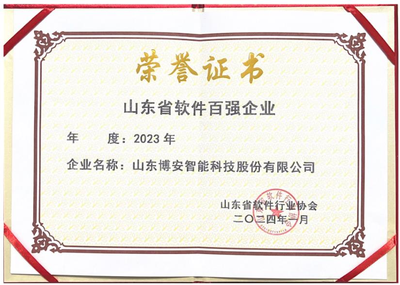 2024年1月25日,在濟(jì)南市華禾普蕾司頓酒店,舉辦了隆重的頒獎(jiǎng)儀式。我公司榮獲山東省軟件百強(qiáng)企業(yè),副總經(jīng)理張清雷代表公司參加了頒獎(jiǎng)儀式。
